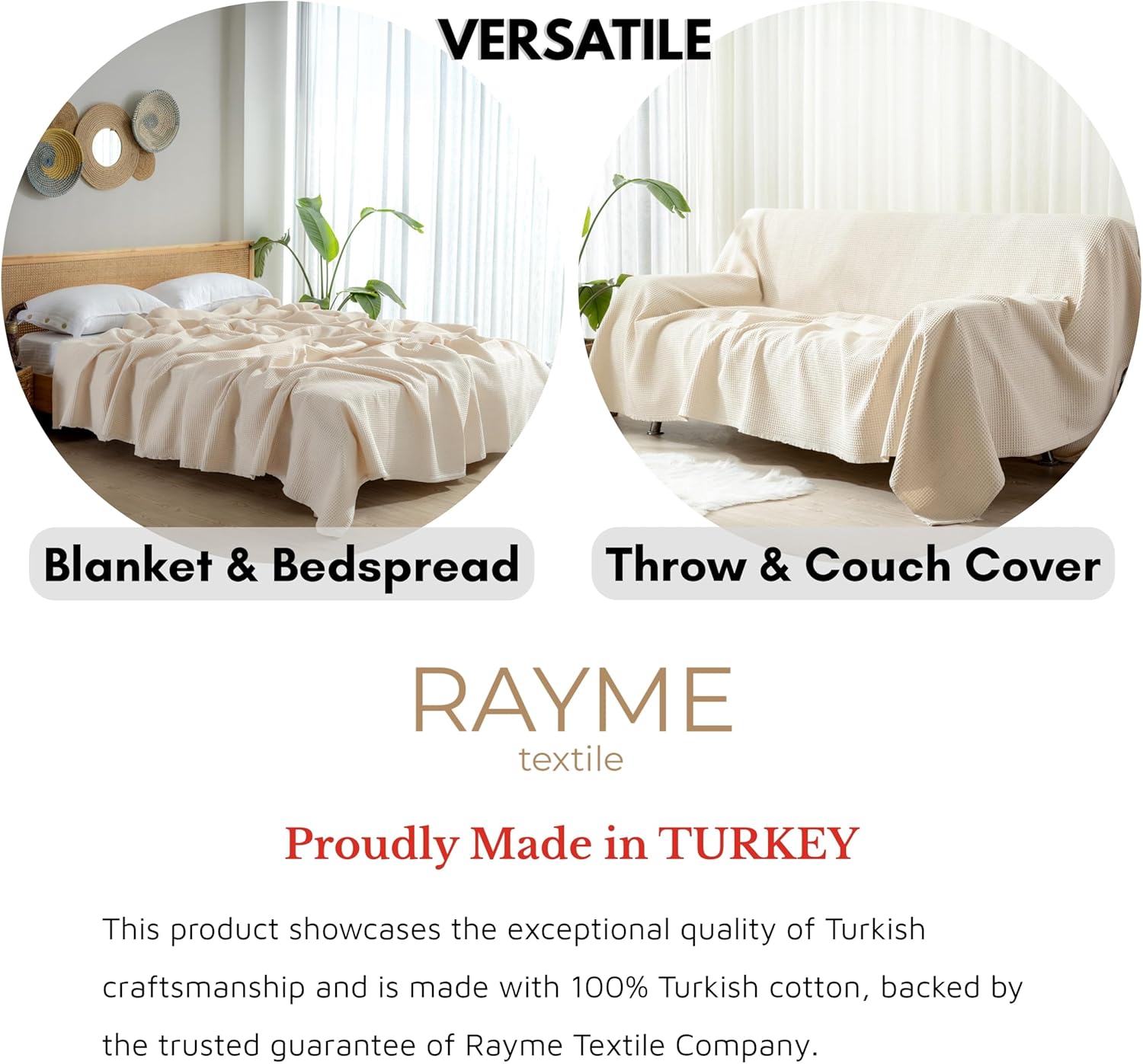 | Product Care Instructions | EASY CARE & DURABILITY: Enjoy hassle-free maintenance with this machine-washable 100% Turkish cotton blanket. Simply wash at 40°C/104°F and tumble dry on low. Avoid bleach. Crafted from high-quality, long-staple Turkish cotton by RAYME TEKSTIL, this blanket becomes softer with every wash, Machine Wash |