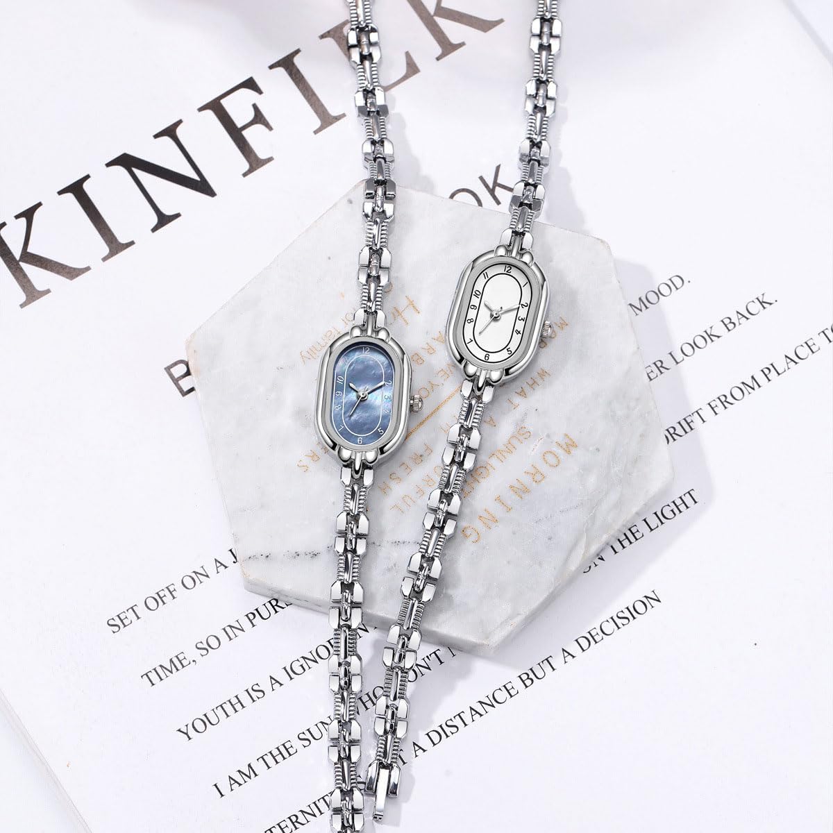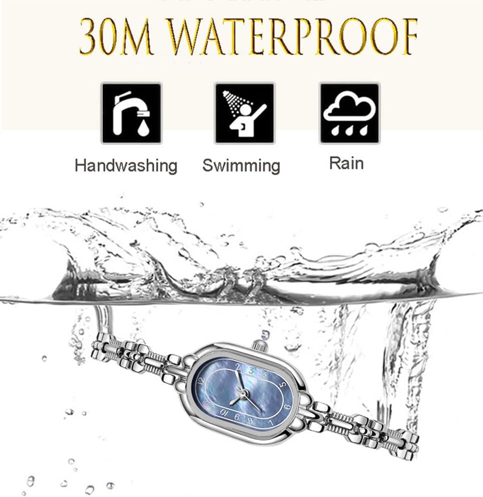 Brand: ADSBIAOYE Gender: Female Display type:Analog Case: Alloy Case Size:19*28mm Case Thickness:8mm Band width:7mm Total Length:200mm Case Shape: Oval Strap: Alloy Strap colour: Gold Closure Type:Jewelry buckle Dial colour: White/Gold Movement: Quartz Water resistance: 30 meters Product Feature : This is a very Simplicity, trendy, and great quality quartz watch. Superior quality quartz movement ensures the accuracy and constancy of the time. Exquisite alloy strap which is soft, durable, breathable and comfort. mineral high hardness glass mirror,wear-resistant and scratch-resistant ,The display is clearer. This wrist watch will fit with any occasion valentine's Day, Christmas, Thanksgiving, Birthday Gift, Anniversary, etc. NOTE: Too much water touch will shorten watch life. Clean watch by a soft cloth regularly is highly recommended.