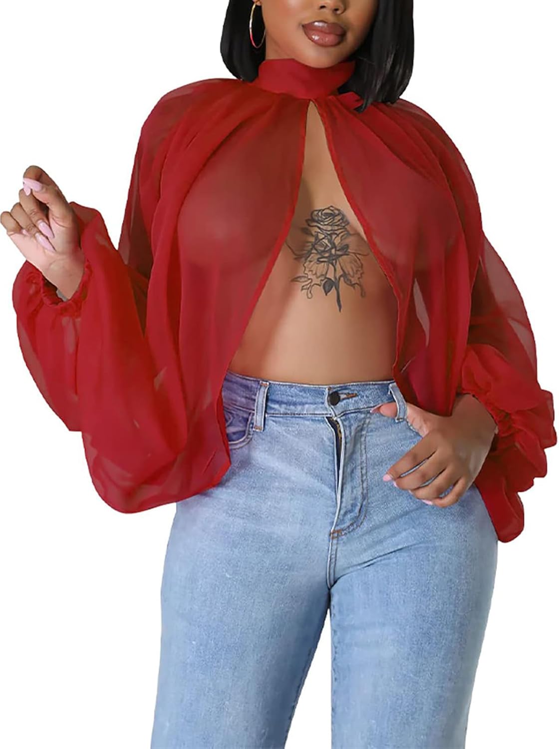 | Style Name | Mock Neck Halter Batwing Sleeve Open Back Top |
